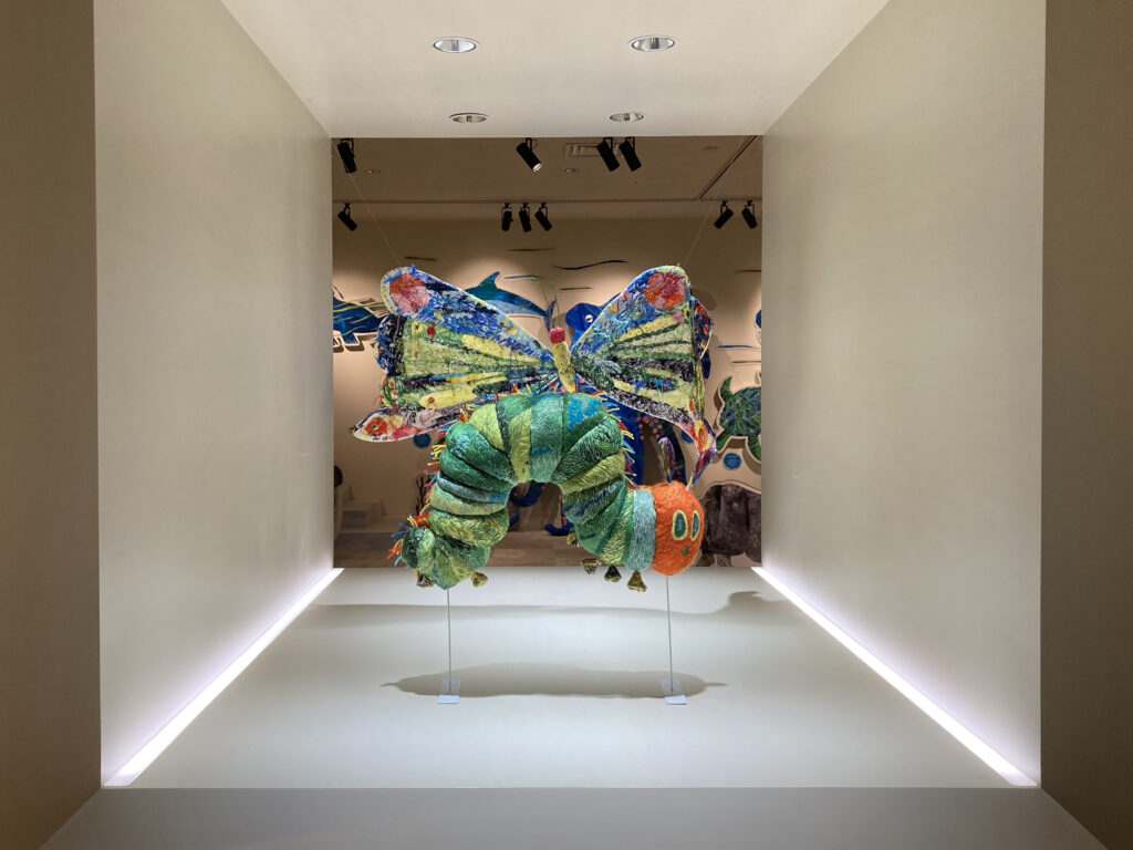 クリエーティブ本部 デザイナーのNです。 【ミライデザイン研究所】とはーーー 空間デザインの領域から一歩外に飛び出し、 考え方やデザインの成り立ちについて考察、予想しアイデアにプラスしていく、そんな企画です。 前編に引き続き、昨年11月に二子玉川にオープンした、絵本作家エリック・カールの描く絵本の世界観がテーマの 国内初インドアプレイグラウンド施設「PLAY! PARK ERIC CARLE」についてを、 同様の工夫が凝らされた他の体験型展示会・店舗と合わせてご紹介します。 3.見るだけではなく、触って学べる 「オートマタ(からくり人形)」では、エリック・カールの作品をモチーフにしたからくり人形やゲームが遊べます。 動物たちの形の磁石でボールの通り道を作り、下まで到達する速さを測ったり、 『パパ、お月さまとって!』のゲームではビー玉を上まで落とさずに運んだり、楽しみながら自分で工夫する面白さを感じられます。 ▲自分で動かすことで、どうしたら上手くいくのか考えながら遊べる エリック・カールは自分で絵具を塗った薄紙を切ったり、破いたりしてコラージュしながら絵を描いていました。 「アトリエ」ではそんなエリック・カールの技法を体験できるワークショップなどが開催されています。 絵本を読んで楽しんだ後に、自分の手で作品を生み出す体験をすることで、 子どもたちの掻き立てられた創造力や自主性を発揮できる場となっています。 ▲色紙作りや、昆虫標本などを手作りしオリジナルの作品が出来上がる -あらゆる視点から世界に入り込ませる- 今回は親子連れなど、ターゲットが絞られてくる施設で、大切だと感じたポイントを3点にまとめてご紹介しました。 1.子どもも親も安心して楽しむための、目が行き届く作りへの配慮 2.子供の目線だからこそ楽しめる仕掛けによって、大人も一緒に発見ができる 3.見るだけではなく、触って学べる場所を作ることで、体験と共に記憶に残る 絵本というワードに捉われ、子どもだけにフォーカスした作りだと 安全面などの心配から保護者は自由にのびのびと遊ばせてあげることも難しくなります。 また、子どもの気持ちになっているつもりでも、設計している大人ではまだその目線に立てていないかもしれません。 あらゆる視点から安心して親子が絵本の世界を楽しめる配慮が必要不可欠です。 -それぞれの要素をいかに空間に落とし込むか- 上記のポイント3点をまとめる大きな空間づくりとして「思わず近づきたくなる部屋の繋がり」がありました。 「PLAY! PARK ERIC CARLE」は一方通行ではなく、それぞれのブースを行き来できます。 だからこそ、ブースの繋がりや飽きさせない工夫が大事になってきます。 例えば「緑の迷路」を抜けた先に「ディスカバリーゾーン」があり「草をかきわけて」というタイトルで昆虫たちの展示がされています。 迷路の緑の壁がまるで草のようになっていることで、 子どもたちはその先に何が待っているのか興味津々で標本や虫の音に耳をすませます。 迷路からは「アスレチック」の上の部分が見え「この後に何か待っている!」と気持ちが昂ります。 「オートマタ(からくり人形)」のブースはアスレチックブースよりも床が低い位置にあるため、 遊んでいる際に大きなからくり仕掛けが目に入りやすくなっています。 体を動かし疲れたら、からくりを見て近くの休憩スペースで飲み物を飲むこともできるのです。 親子が自分たちのペースで目一杯パークを満喫できる空間の繋がりがあってこそ、3点のポイントが光ると実感しました。 ここまでに述べたような工夫は他の体験型の展示会や店舗にも見受けられます。 ●生活の中の「食」をテーマにした体験型展示「いただきますの前、ごちそうさまの先。展」 伊藤忠商事のあらゆるSDGsに関する活動を後押しする情報発信・体験の場として出来た スタジオ「ITOCHU SDGs STUDIO」(東京・港区)で10月16日(土)から11月14日(日)まで行われていた展示です。 世界食料デーにあわせ、「食べる」という日常の行為の背景や課題をグラフィックで展示するほか、 3種類のオリジナル弁当を販売していました。 空間をオレンジと緑で分断し、オレンジ側に「課題や問題」、緑側に「解決策や取り組み」を展示しています。 両方を交互に見たり、片方からじっくり読んだり展示の周り方は人それぞれですが、 明確なレイアウトなので難しく感じる内容も入ってきやすい見せ方となっていました。 ▲展示台も左右で課題と解決するための取り組みや製品を並べている グラフィック展示を見た後に奥へ進むと、3種類のオリジナル弁当のサンプルが展示されています。 期間中にそれぞれ入れ替わりで販売されていましたが、 私は[ITOCHU SDGs STUDIO]エバンジェリスト冨永愛さん考案の「発酵美容弁当」を購入できました。 それぞれのお弁当には食材一つ一つの解説がついてきます。 また、中身だけでなく、お箸や風呂敷も使い捨てのものでは無く、食事で生まれるゴミ削減が考慮